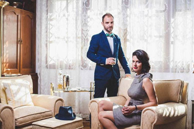 En la foto, en estética Mad Men, Joan Miquel y Ambar. Fotografía: Marc Bordons. Maquillaje y estilísmo: Aina Vela