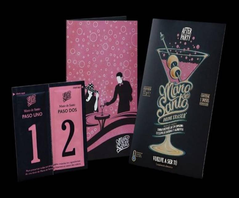 La agencia Aracnofobia, firma independiente de capital 100% español lanzada por el creativo José Luis Alberola a mediados del año pasado, es a responsable de la marca y el lanzamiento publicitario de Mano de Santo. Este producto, ingerido al estilo de una sal de frutas, metaboliza los efectos del alcohol en el estómago a los pocos minutos de su consumo. En palabras de Jesús Navarro, uno de los socios de la compañía que fabrica y comercializa este producto: “Mano de Santo inaugura lo que nosotros llamamos consumo del bienestar, en este caso, ayudando a evitar los síntomas después de un exceso como puede ser pesadez, mareos o la temida resaca. Como se puede leer en el envase, con Mano de Santo vuelves a ser tú”. La novedad ha tardado dos años en desarrollarse y se está introduciendo en el mercado progresivamente.
