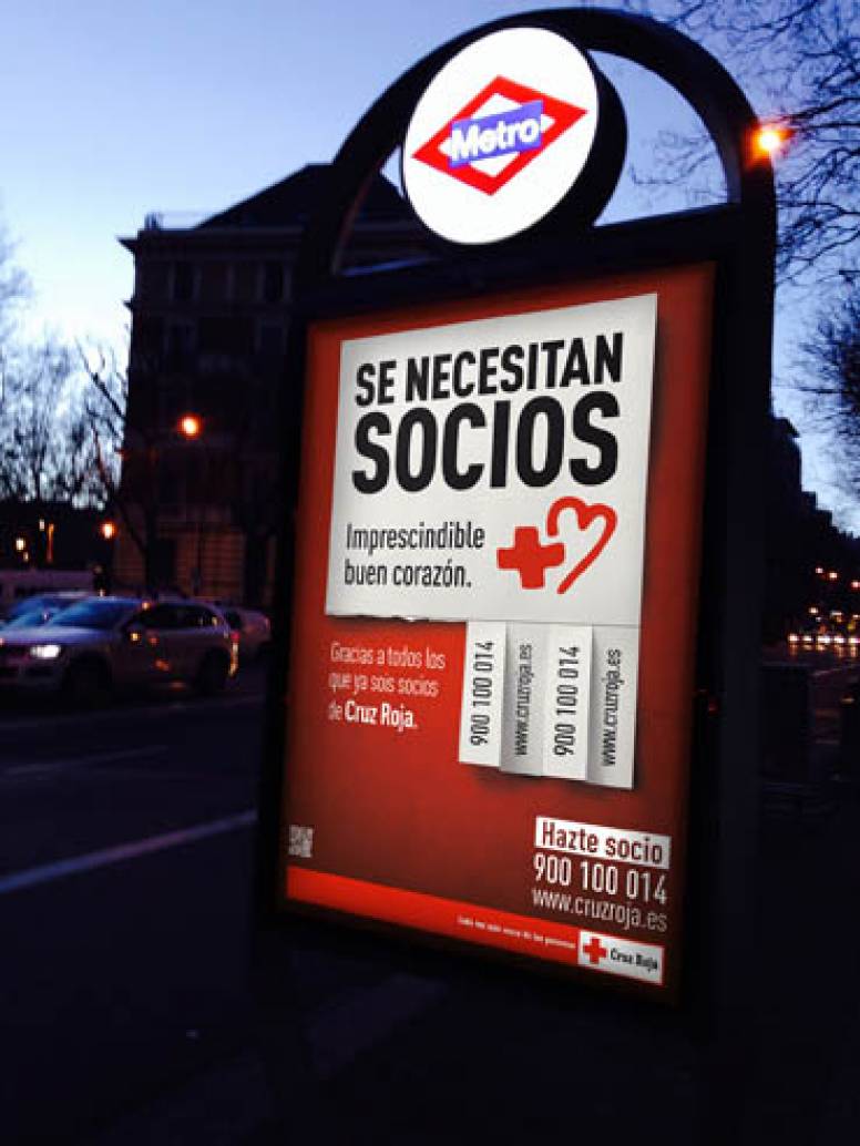 La campaña, con gran presencia en exterior e internet, transmite que siempre es necesario lograr el compromiso de la sociedad con los más desfavorecidos, aún sabiendo que España es uno de los países más solidarios de su entorno y Cruz Roja es una de las ONGs más reconocidas. “Se necesitan socios, imprescindible buen corazón” es el concepto de la campaña que utiliza la estética de afiche callejero para potenciar la imagen de necesidad en que se encuentran las personas más castigadas por la crisis económica en estos momentos