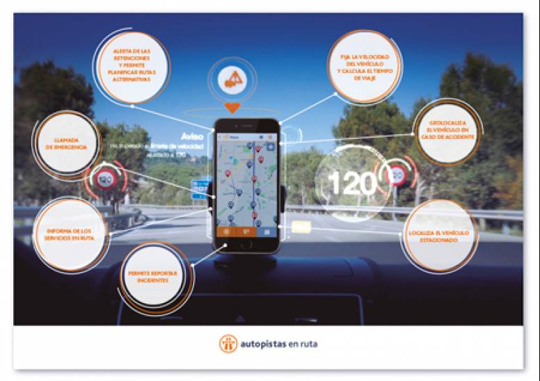 Entre sus servicios, la App "Autopistas en ruta" ofrece un sistema de llamada automática de emergencia similar al eCall propuesto por la Unión Europea, que será de implantación obligatoria en los vehículos a partir del 2018. Además, se ha concebido como un copiloto particular, que informa del estado del tráfico en tiempo real, ofrece la posibilidad de crear alertas de tráfico, calcular rutas o informar de radares, áreas de servicios o muchos otros servicios en ruta.