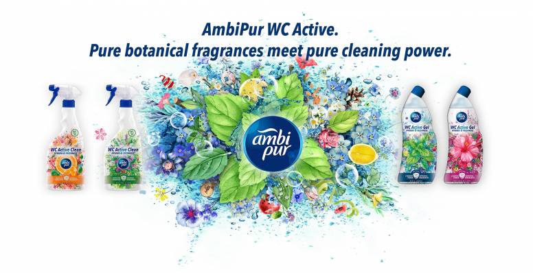 Partiendo de una trayectoria de más de seis décadas en el mercado de ambientadores, la propuesta de valor para la nueva gama de limpieza del WC de AmbiPur se basa en ofrecer una experiencia olfativa única a la hora de limpiar, junto a máxima eficacia e higiene. Los visuales creados para los envases trasladan esta promesa a través de una “explosión” formada por los ingredientes botánicos de las fragancias.