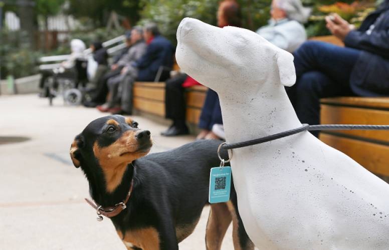 Cada una de las 20 estatuas, de unos 35 kilos de peso, lleva una placa identificativa con un código QR para que quien lo escanee vaya redirigido a la web de Bienestar Animal del Ajuntament, donde se puede ver la historia de los animales, así como el procedimiento para adoptarlos.
