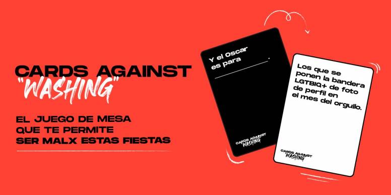 “Cards Against Washing” es un divertido juego de cartas inspirado en famoso “Cards Against Humanity”, en el que la persona más cruel gana, pero en la agencia le han dado una vuelta y jugar es muy sencillo, solo hay que ir juntando cartas de situación (negras) y respuesta (blancas) para crear la combinación más loca, irónica o divertida de uno de los “washing” más extendidos.