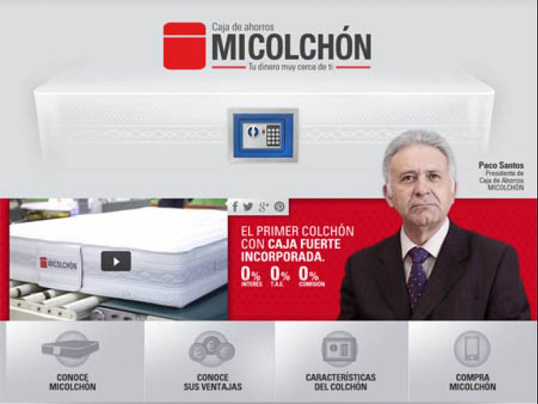 En la campaña se insta a los ciudadanos a hacerse clientes de la Caja de Ahorros Mi Colchón(comprando el colchón y guardando el dinero en él) porque “la Caja de Ahorros Mi Colchón ni quiebra, ni se fusiona ni baila al son de los mercados”.