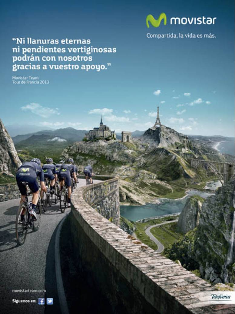 Esta campaña, que se emite en prensa y medios online, cubre los principales eventos del calendario ciclista internacional en los que el Movistar Team participa. De esta forma, la campaña consta de un gran número de ejecuciones en prensa y medios online adaptadas a cada prueba ciclista y a los resultados de los integrantes del equipo Movistar en cada una de ellas.