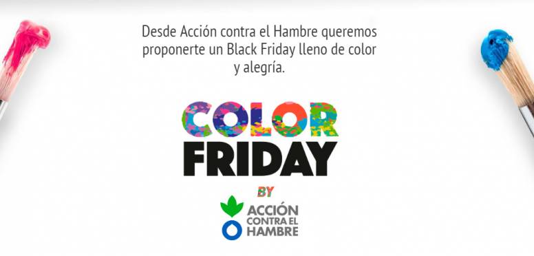 Acción contra el Hambre, de la mano de SrBurns, ha lanzado Color Friday, una campaña con la que la ONG pretende ofrecer una alternativa solidaria al Black Friday y combatir la desnutrición infantil. Para conseguirlo, siente tiendas online como Ibertrónica, Ticketbis, Ulabox, Interflora, Pangea, IslandTours y Bebenube ofrecerán, además de sus descuentos del Black Friday, la posibilidad de realizar una donación a Acción contra el Hambre. De esta forma los usuarios podrán ayudar a financiar diferentes proyectos de prevención, diagnóstico y tratamiento con los que la ONG cuenta para luchar contra la desnutrición en más de 45 países.