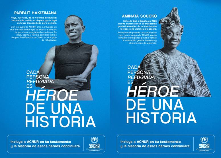‘Héroes’ es una campaña que comparte las historias de personas refugiadas cuya vida ha cambiado gracias, entre otras iniciativas, a la generosidad de quienes han decidido dejar un legado. La protagonizan personas como Wilmar Quintero, que fundó una organización en Medellín para integrar a personas desplazadas a través del deporte y la educación; Raphael Basemi, que huyó de la R.D. Congo y ahora lidera un negocio de reciclaje en un campo de refugiados en Kenia; o Parfait Hakizimana, que tras huir de Burundi que creó una escuela de taekwondo para jóvenes y llegó a participar en los Juegos Paralímpicos de 2020.