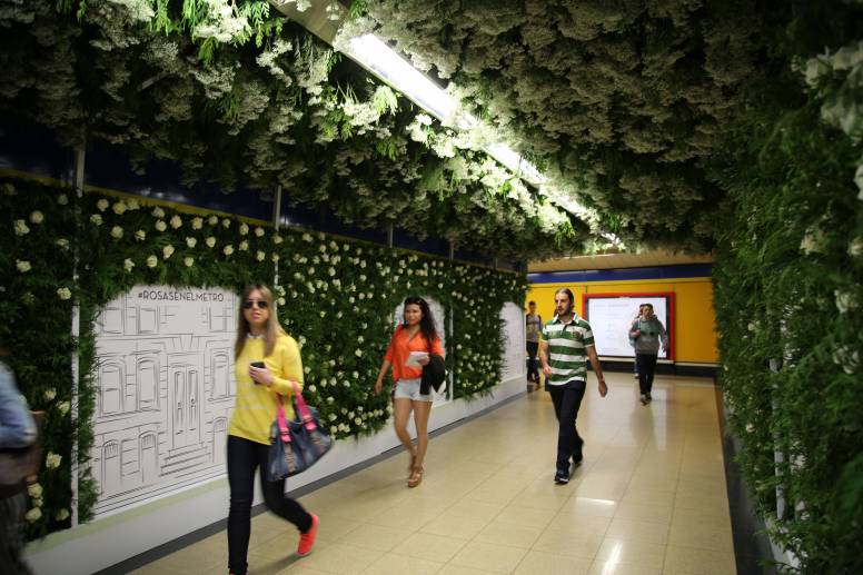 La firma Adolfo Domínguez, con su perfume Agua de Rosas, ha querido homenajear a las madres y a la primavera a partes iguales en su última acción experiencial sde stret marketing. La marca ha customizado la céntrica estación de metro de Callao en Madrid, transformándola en un auténtico jardín floral subterráneo.