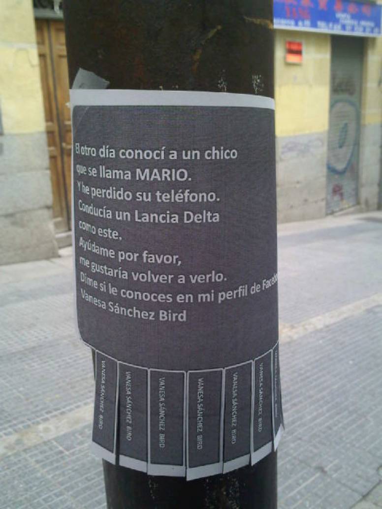 Si algo está claro en este mundo cambiante es que la comunicación y el marketing ha cambiado pero el amor no. Prueba de ellos es que Vanesa, una chica decidida, resulta y conectada se lanzó a la red para buscar a Mario, un chico que había conocido en una discoteca y que le había llevado a casa en un Lancia. Vanessa subió el vídeo a Youtube, y lo enlazó a su perfil de Facebook. A partir de ese momento, se crearon grupos de apoyo a Vanessa, su historia circuló por foros y blogs e incluso se pegaron 3.000 carteles por Madrid para encontrar a Mario. Uno de esos carteles lo vio el periodista de la Ser, José María Rivero, quien contactó con Vanessa para poner a su disposición el programa en el que trabaja y con Lancia, destapando así una acción de marketing viral puesta en marcha por la marca y la agencia Equmedia XL. La historia no acabó aquí ya que, aunque nadie pudo encontrar a un Mario que en realidad no existía, Carles Francino invitó a participar al programa Hoy por Hoy de la Ser a Alessandro Punturo y Enrique Díaz, responsables de nuevas tecnologías de la marca y ola agencia, respectivamente, para que contasen los entresijos de una historia que impactó a muchos e involucró a más.