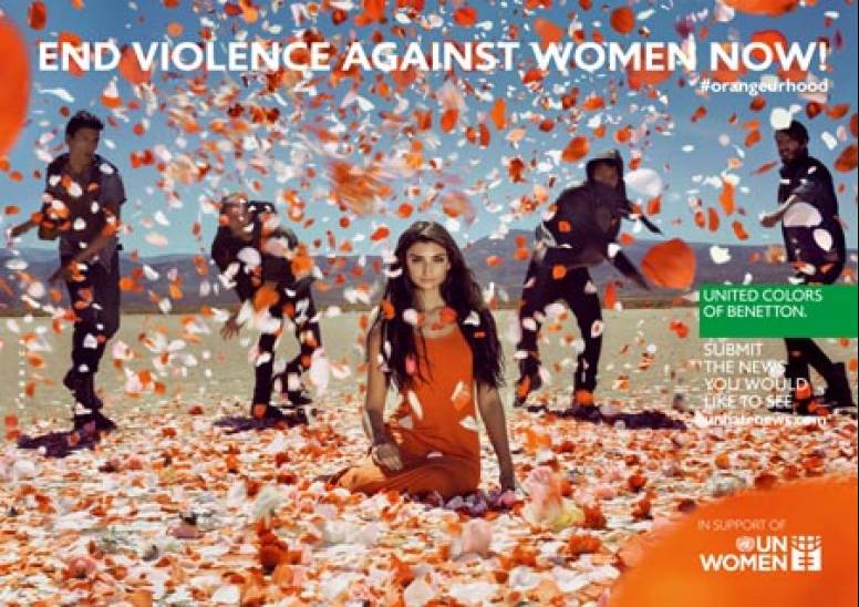 Una mujer 'lapidada' con pétalos de flores por un grupo de hombres: esta es la imagen simbólica de la nueva campaña de United Colors of Benetton, llevada a cabo en apoyo de UN Women (la agencia de las Naciones Unidas fundada para promover la igualdad de sexos y la emancipación de la mujer), con ocasión del Día Internacional de la ONU de la Eliminación de la Violencia contra las Mujeres, el 25 de noviembre.