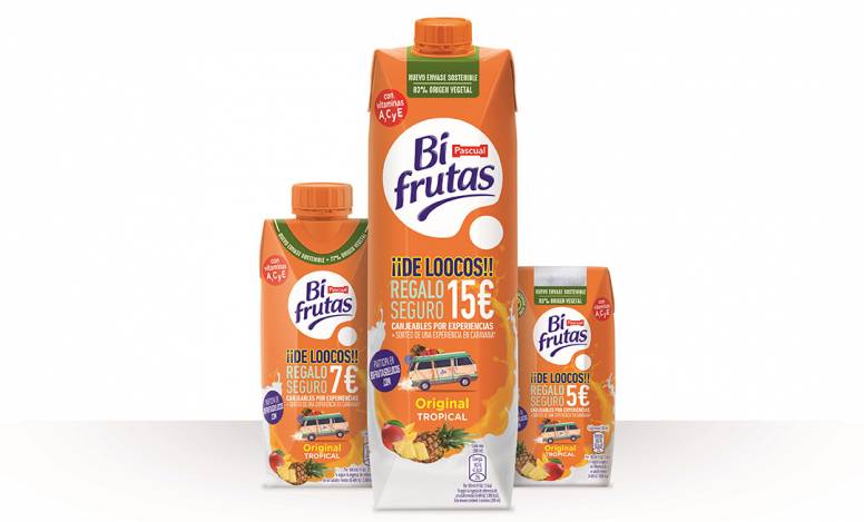 Durante este verano, Bifrutas ha diseñado una campaña donde el consumidor va a ganar un premio seguro por la compra de cualquiera de los formatos de su gama Original y, además, entra automáticamente en el sorteo de un viaje de una semana en Caravana. Todos los formatos de esta gama de la marca estrenan un nuevo packaging donde viene reflejada la cuantía de euros que podrán canjear directamente por una de las experiencias disponibles, desde los 5 euros del brik de 200ml a los 15 euros del formato de 1 litro.