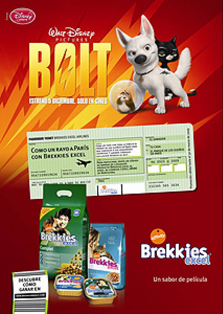 El lanzamiento en España de Bolt, la apuesta cinematográfica de Disney para las Navidades de 2008, vendrá acompañado por el acuerdo de promoción y colaboración entre la marca Brekkies Excel, de Affinity Petcare, y Walt Disney Pictures. Este acuerdo, que se extenderá a otros países de la Unión Europea.