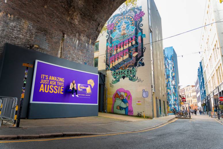 La multinacional Cadbury coloca a australianos de carne y hueso en sus vallas publicitarias para promocionar un nuevo producto importado desde el país oceánico