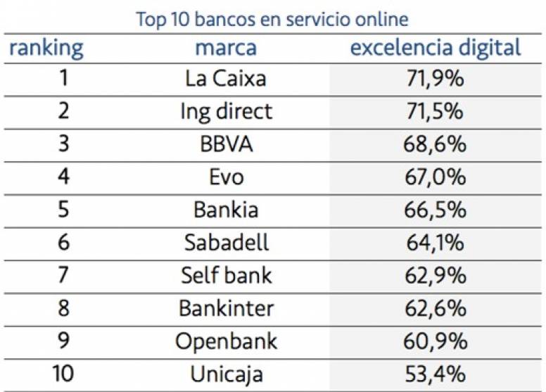 La consultora Digital Advice ha analizado la madurez digital del sector financiero en España y ha concluido que La Caixa es la entidad más madura desde el punto de vista digital. Para ello se han analizado más de 100 parámetros que hacen referencia a cuestiones como como la experiencia del usuario, la presencia y el comportamiento de la marca en redes sociales, su posicionamiento en buscadores (SEO), el SEM, la accesibilidad multipantalla, el servicio al cliente o el grado de utilización por parte de la entidad de herramientas de medición para los diferentes servicios. De acuerdo con este análisis, La Caixa destaca primordialmente por la cantidad de clientes que utiliza habitualmente su servicio online.