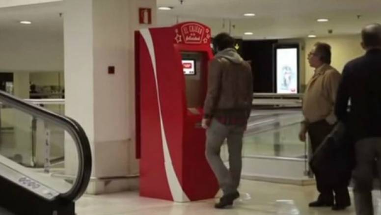 Dicen que el dinero no da la felicidad. Lo que si es cierto es que en esta época, a todos nos viene bien un ingreso extra. Por eso, Coca-Cola eligió las navidades como el mejor momento para crear el ‘Cajero de la Felicidad’, un cajero del que se podían sacar 100 euros gratis, sin tarjeta, con la única condición de que se compartiesen, para hacer feliz a alguien.