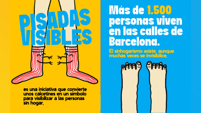 “Pisadas Visibles” es una nueva acción social que transforma un par de calcetines en una herramienta de denuncia y sensibilización frente al sinhogarismo en Barcelona. La iniciativa, creada para Arrels Fundació, nace con un objetivo claro: hacer que las pisadas de quienes viven en la calle -más de 1.300 personas según el último recuento- dejen de ser invisibles para una ciudad que las cruza a diario sin verlas.