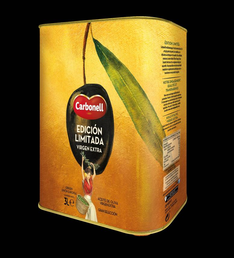 Carbonell, marca de aceite de oliva perteneciente a la empresa española Deoleo (presente en 43 mercados y comercializadora de otras marcas como Koipe, Hojiblanca, Bertolli, Carapelli y Sasso), vuelve a apostar por las ediciones limitadas a través del lanzamiento de una nueva lata de 3 litros de aceite de oliva virgen extra Gran Selección, que se suma a la que presentó el año pasado con motivo de su 150 aniversario. "Esta nueva edición limitada también presenta un diseño único que puede convertirse en una pieza coleccionable para aquellos amantes del aceite de oliva y nostálgicos que ven en Carbonell la marca que ha formado parte de las cocinas españolas alimentando a varias generaciones", señalan desde el área de marketing y comunicación. De hecho la marca presenta este producto como propuesta de regalo gourmet de cara a las próximas fiestas navideñas.