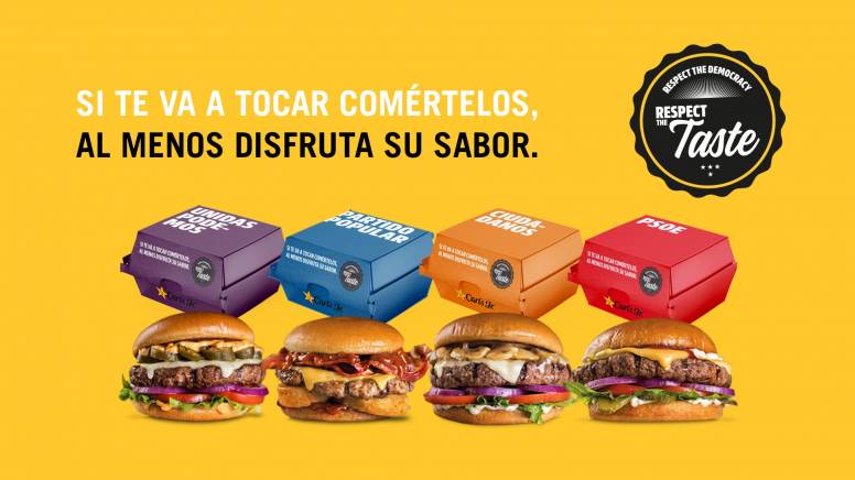 Carl’s Jr. ha anunciado el lanzamiento de una campaña original y transgresora, que se vincula con la actualidad política española: ‘Respect the Democracy. Si nos va a tocar comérnoslos, al menos disfrutemos de su sabor’.