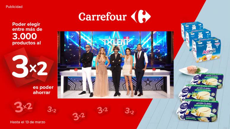 Carrefour inaugura las nuevas soluciones publicitarias para la Televisión Conectada de Publiespaña. Son dos formatos digitales de amplia notoriedad, ‘L Shape Digital’ y ‘Ad In Content’, caracterizados por integrarse en los contenidos a la carta que ofrece la plataforma Mitele en Smart TV, PC, tablet, web y app. Carrefour, uno de los principales anunciantes del sector de la distribución, estrena estos formatos con su campaña ‘3 x 2 en más de 3.000 productos’, planificada por Arena, la agencia responsable de la planificación y la compra de medios de la marca.