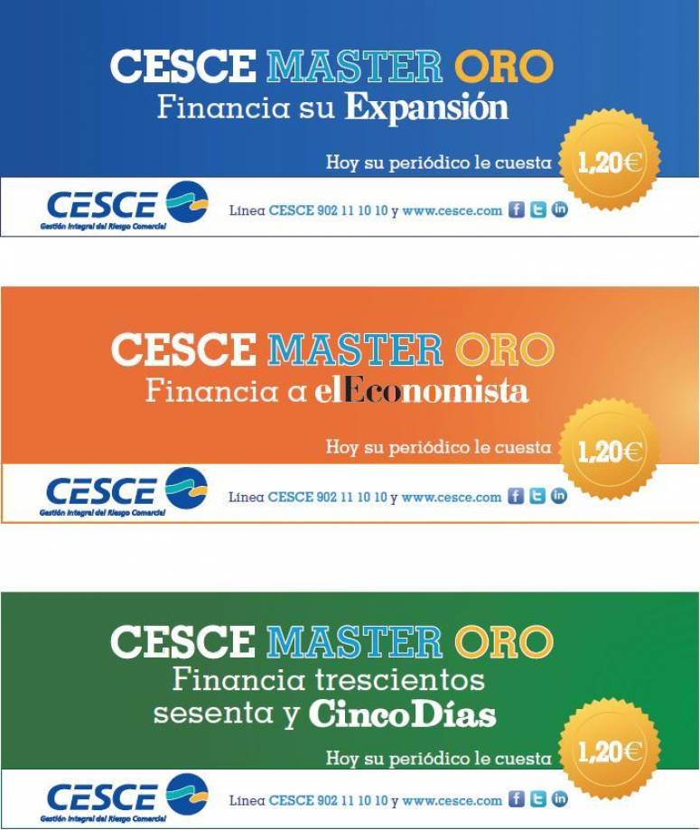 La campaña se inició con un módulo en la portada de los diarios con la intención de generar expectativa. Posteriormente quien compre Expansión, Cinco Días o El Economista en quioscos y los suscriptores que los reciban los encontrarán envueltos por un fajín, personalizado para cada medio, anunciando que ese día el precio del periódico es más barato ya que CESCE Master ORO financia parte del coste.