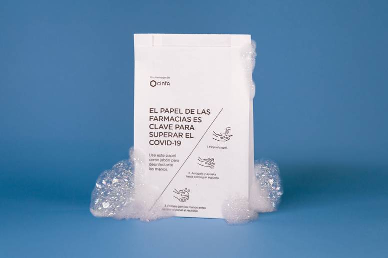 Durante la alarma sanitaria generada por el coronavirus, la labor de los farmacéuticos y las farmacéuticas se ha puesto de manifiesto más que nunca. Han estado y están en primera línea como servicio esencial, aconsejando y apoyando a cada paciente. Un rol importantísimo que ha quedado patente y por el que Laboratorios Cinfa ha querido rendirles homenaje, visualizando el papel clave que han tenido durante la pandemia. Así nace ‘Papel Clave’, una acción ideada por Cinfa en colaboración con su agencia Ogilvy Barcelona, que consiste en convertir las bolsas de papel con las que se envuelven los medicamentos en las farmacias en un papel desinfectante que, al contacto con el agua, se transforma en jabón para lavarse las manos.