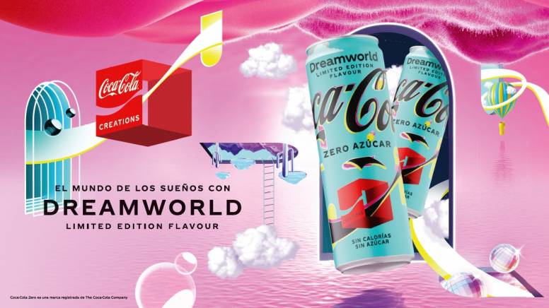 Llega a España Coca-Cola Dreamworld, el último lanzamiento de edición limitada enmarcado bajo la nueva plataforma de innovación de la marca, Coca-Cola Creations. Inspirado en el mundo de los sueños, la bebida llega a nuestro país exclusivamente en versión Zero Azúcar, como lo hicieron los anteriores lanzamientos de la plataforma, Coca-Cola Intergalactic y Coca-Cola Marshmello. De este modo, la compañía continúa avanzando en su compromiso por reducir el azúcar en sus bebidas y ofrecer a los consumidores alternativas sin o bajas en calorías.