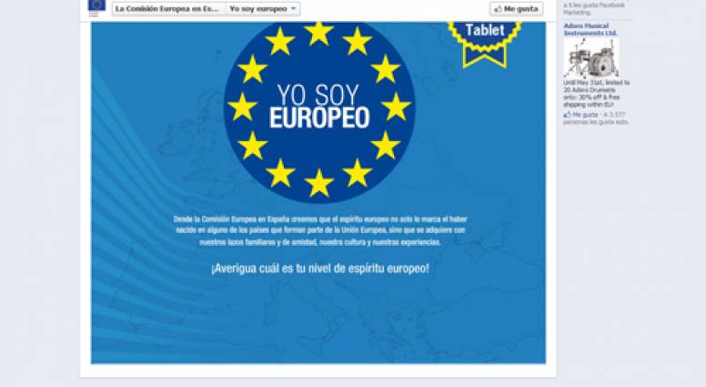 La Comisión Europea ha lanzado el primer barómetro 2.0. para medir el nivel de europeísmo de los ciudadanos. La Representación de la Comisión Europea en España apuesta por los medios sociales para establecer una comunicación más directa y cercana, con el objetivo de dar a conocer a los ciudadanos los servicios que ofrece este órgano de gobierno. Y con motivo de la celebración del Día de Europa (celebrado el pasado 9 de mayo), la Comisión Europea en España presentó 'Yo Soy Europeo', una aplicación para Facebook que permite a los usuarios conocer su índice de europeidad y compartirla en sus muros.