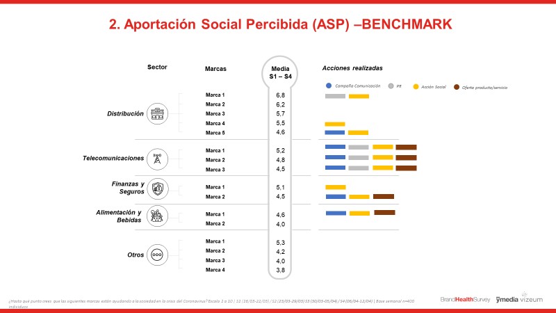 Aportación social percibida de las marcas por sectores que realizan acciones contra el Covid-19 | Fuente: Brand Health Survey, Ymedia Vizeum