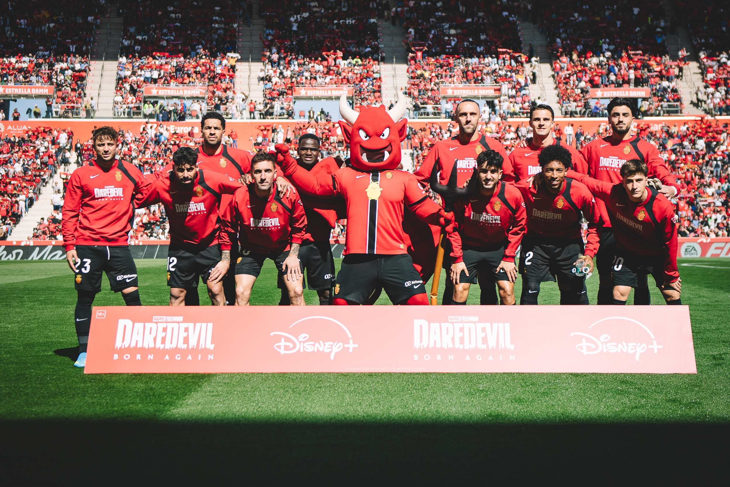 La elección del Mallorca no fue casual. El club comparte códigos visuales y simbólicos con el personaje -desde los colores rojo y negro hasta la figura de “Dimonió”, su mascota-. Además, el contexto competitivo aportaba tensión narrativa y el enfrentamiento frente al Real Madrid, uno de los rivales más exigentes del calendario, reforzaba la idea de desafío extremo, en línea con los antagonistas habituales del universo Daredevil.