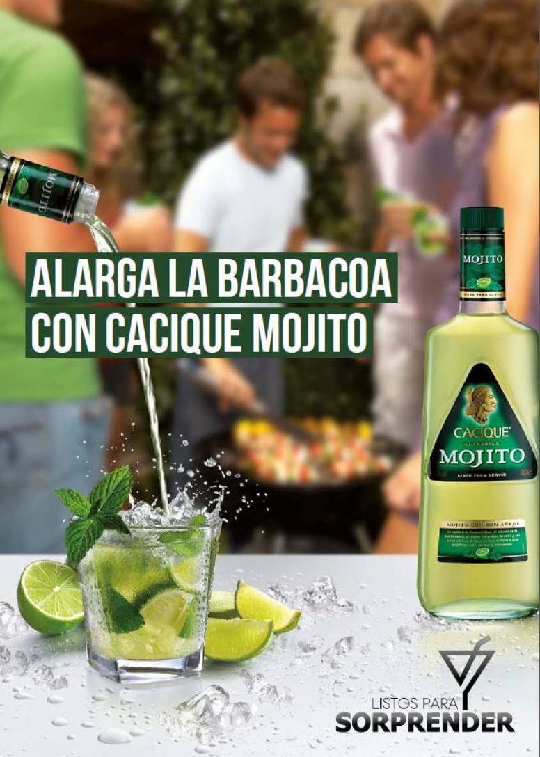 Respecto al consumo en el hogar de Cacique Mojito, se pone en marcha un plan promocional en más de 700 supermercados e hipermercados para construir ocasiones de consumo y fomentar el consumo grupal con acciones multicompra, en este sentido también se ha diseñado un nuevo formato para el cóctel en un envase de dos litros. El plan de comunicación también incluye 39 mil degustaciones que se realizaran en diferentes puntos de concentración del target y 142 lotes del producto que se enviarán a consumidores.