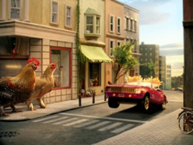 La firma Burger King presenta hoy su campaña de publicidad para promocionar Chicken fries, el pollo que se cree una patata frita. El spot, ideado por la agencia de publicidad Crispin Porter + Bogusky, ha sido protagonizado por dos pollos bajo la dirección de Matt Lensky, que ya había trabajado anteriormente con pollos-actores en televisión.