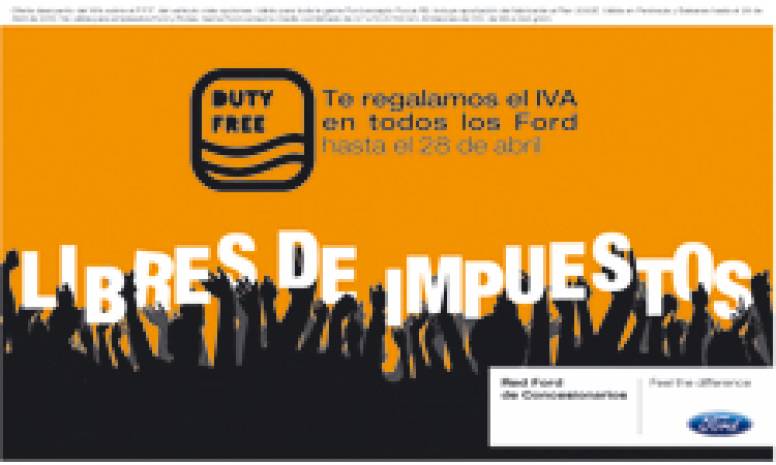 acerque a un Concesionario de la Red Ford podrá llevarse el vehículo que desee sin pagar impuestos. La respuesta del público a las anteriores campañas de descuento, ha llevado a Ford España a continuar con su estrategia comercial impulsando iniciativas que le ponen al lado del consumidor a la hora de facilitar la adquisición de vehículos.