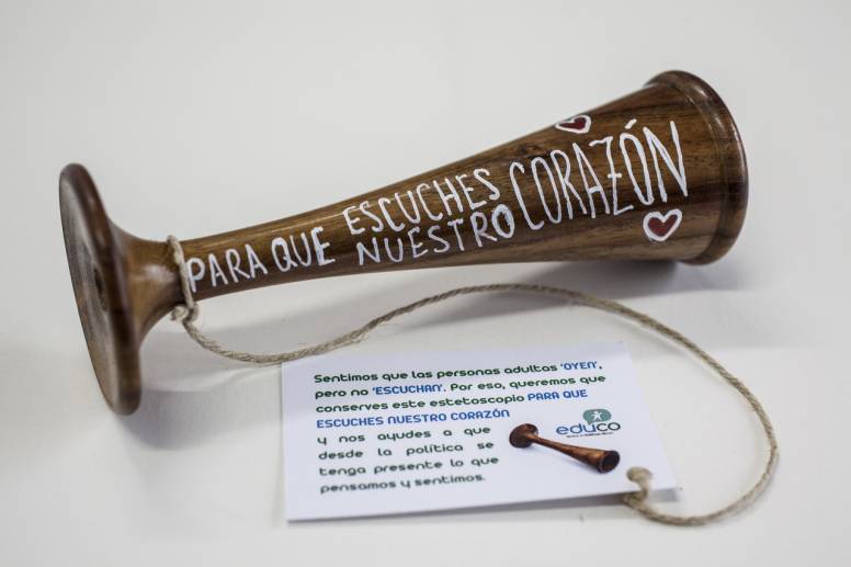 Y, por último, un estetoscopio para que los políticos recuerden escuchar a niñas y niños desde el corazón y les ayuden a que desde la política se tenga presente lo que piensan y sienten.