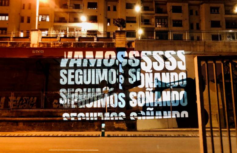 Por ello, dentro de una acción diseñada y ejecutada por la agencia creativa MUY, la SD Eibar ha recogido algunos de los cientos de mensajes de ánimo que sus seguidores le han trasladado en redes sociales en las últimas semanas y los ha amplificado y dado vida en forma de enormes proyecciones, realizadas en distintas ubicaciones del municipio, porque los seguidores de la SD Eibar siguen confiando en conseguir la permanencia.