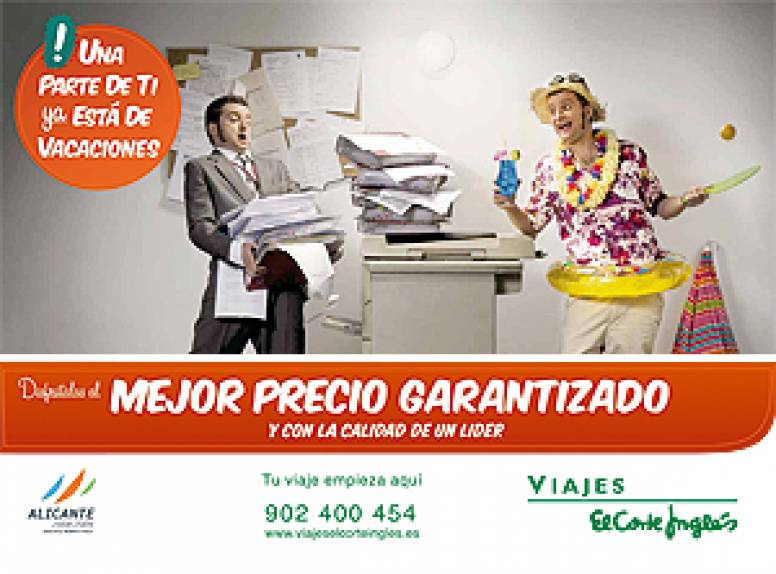 La acción, obra de la agencia de publicidad Grupo R, nos cuenta, en clave humorística, la historia un empleado que vive un tedioso día de trabajo. Mientras su jefe le suelta una retahíla de órdenes, su `otro yo´ aparece junto a él, disfrutando de un día de vacaciones agradable y divertido. En esto se basa el concepto creativo, caracterizado por el deseo del trabajador de irse de vacaciones, porque las ha reservado ya a través de Viajes El Corte Inglés.