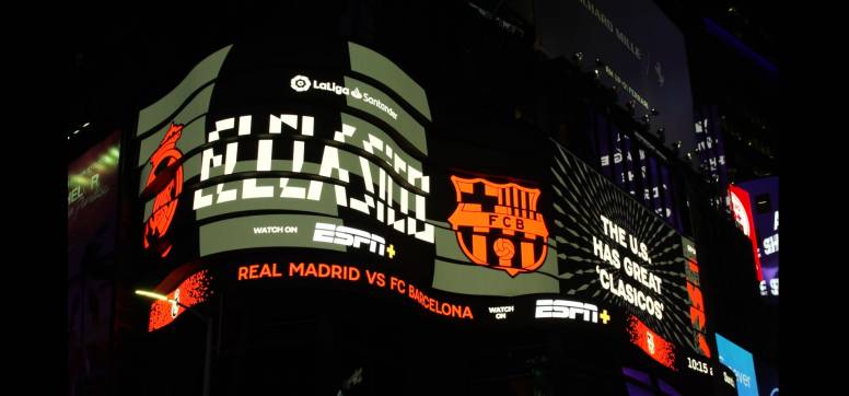 El primer ElClásico de la temporada de LaLiga dejará su huella en algunos de los escenarios más emblemáticos del mundo. Por ejemplo, una campaña especial sobre ElClásico ha tomado Times Square en Nueva York como parte de la cobertura sin precedentes de la cadena local ESPN, así como en el espacio de ocio LA Live en el centro de Los Ángeles.