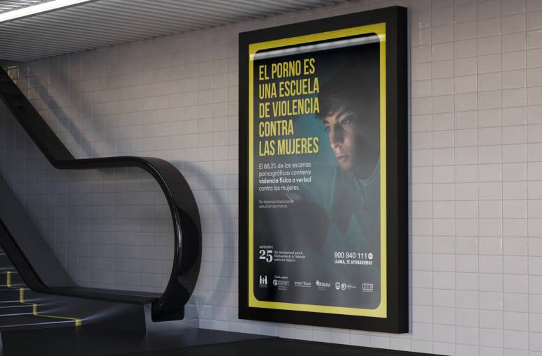 El 88% de las escenas sexuales en el porno muestran violencia física o verbal contra las mujeres. Este es el punto de partida de esta sencilla, pero impactante, campaña de la mano del Instituto Vasco de la Mujer (Emakunde). La campaña persigue el objetivo de dejar muy claro que la pornografía es una escuela de violencia contra las mujeres. Y que dejar la educación sexual en sus manos es un grave peligro ya que, tal y como afirma el actor porno de la campaña, es una enseñanza en el sometimiento y la sumisión.