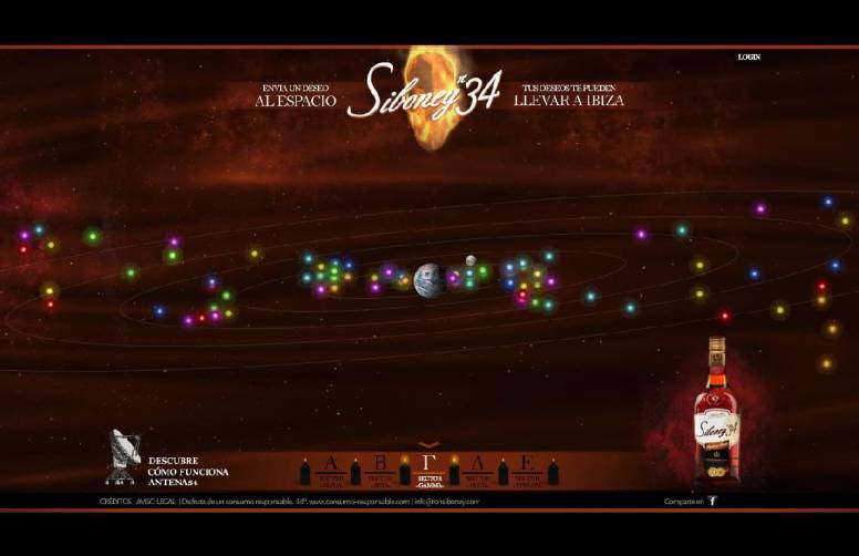 Se trata de una antena capaz de enviar los mensajes que los usuarios deseen a través de la web www.antena34.com. Escribes tu deseo en el site de la marca, luego el mensaje se transforma en un sistema binario de ceros y unos, pasa a otro sistema informático que lo manda a la antena y ésta lo envía al espacio. Además entre los participantes se sorteará un viaje para dos personas a Ibiza para asistir a la fiesta SuperMartXé – Siboney 34.