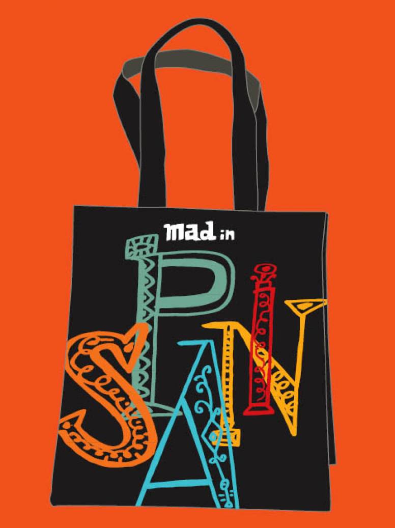 El objetivo de Mad in Spain es revolucionar el mercado de los souvenirs o productos de recuerdo con imagen de España, pero sobretodo potenciar una nueva imagen de España entre los turistas, dar a conocer el diseño español, tanto de creativos consagrados como de nuevos talentos y promover y apoyar proyectos sociales y medioambientales. Los productos tienen un alto estándar de calidad al ser elaborados con materiales orgánicos, naturales, reciclados o reciclables sostenibles. La gama está compuesta por cuatro colecciones de productos (barroca, fiesta, tapas y playa), con productos como tazas, bolsas, abanicos, camisetas…, así como otra colección especial dedicada a Moo, la interpretación mariscaliana de un torito que se podrá encontrar en forma de peluches, llaversos, imanes, etc. Los productos textiles son elaborados con algodón orgánico y Mad in Spain se compromete a invertir, al menos, un 10& de sus beneficios en proyectos sociales y medioambientales. Más info en www.madinspain.es