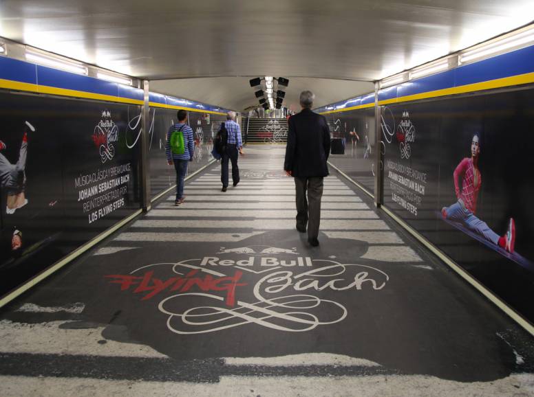 Así, con la idea de dar un toque más urbano a la música clásica y promocionar el espectáculo, Red Bull, junto con la agencia de medios Zenith y JCDecaux Innovate han acercado parte del evento a Metro de Madrid con una campaña publicitaria en exterior.De esta forma, la céntrica estación de Sol se ha convertido en la antesala de Red Bull Flying Bach, cuyos pasillos se han decorado prácticamente de forma íntegra para la ocasión. Las paredes y el suelo cubren con sus vinilos un espacio preparado para poner a prueba los sentidos y envolver a los pasajeros con una acción que traspasa lo convencional. Una acción, en definitiva, pensada para llamar la atención e incrementar el recuerdo al ritmo de las composiciones de Bach.