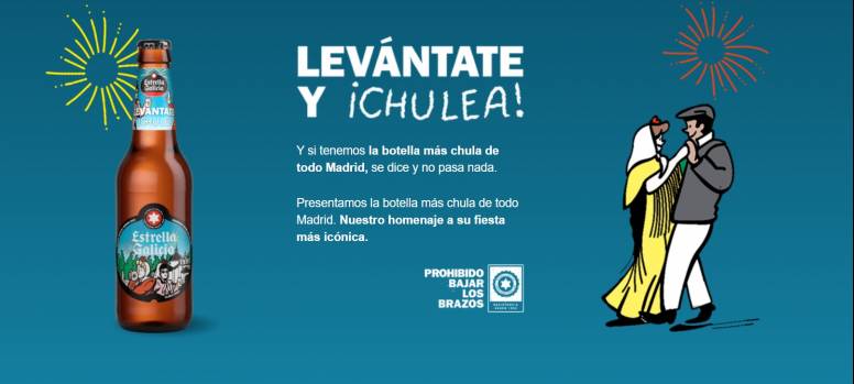 La marca homenajea así a sus consumidores madrileños, plasmando en esta edición especial el contraste entre tradición y modernidad que sólo se puede ver en las grandes citas madrileñas. Todo ello, bajo el lema Levántate y ¡chulea!, que anima a disfrutar de la fiesta sin perder el toque castizo y gamberro.