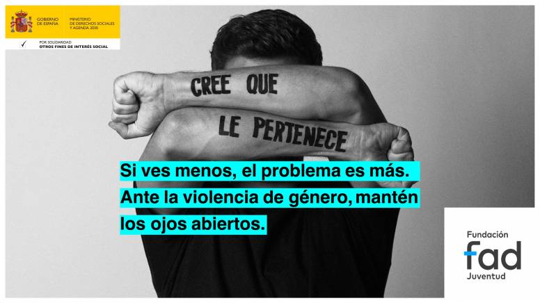 El proyecto ‘Si ves menos, el problema es más’ está compuesto por una pieza audiovisual y gráficas en las que se utilizan conceptos relacionados con la violencia de género para ayudar a detectar este tipo de comportamiento. En la pieza principal, una serie de jóvenes se tapa los ojos con los brazos en los que se leen mensajes como ‘Le revisa el móvil’, ‘Controla lo que hace’, ‘Tiene celos’ o ‘Cree que le pertenece’ y cierra con el claim ‘Ante la violencia de género, mantén los ojos abiertos’, en alusión a la importancia de identificar y denunciar situaciones de abuso.
