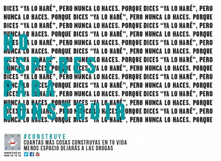 Siguiendo con una línea de comunicación que incide en la necesidad de ‘construir’ para no dejar espacio a las drogas, la Fundación de Ayuda contra la Drogadicción, FAD, ha lanzado su nueva campaña.