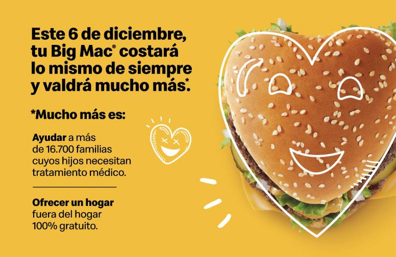 En el marco de la celebración el próximo 6 de diciembre de McHappy Day, la cadena de restaurantes destinará el 100% de las ventas de sus Big Mac a la Fundación Infantil Ronald McDonald