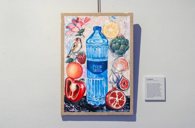 En la exposición, diferentes artistas interpretan, a través de diferentes formatos y estilos, escenas en las que el agua Font Vella se convierte en un elemento esencial de la experiencia gastronómica y social.