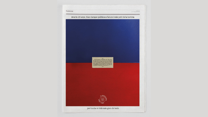 La acción, creada por Libero Creative Club y BUM, incluye una gráfica en los principales diarios deportivos de Cataluña con el texto original de Gamper y el mensaje: 'L'anunci més petit de la història per fundar el club més gran del món' (el anuncio más pequeño de la historia para fundar el club más grande del mundo).