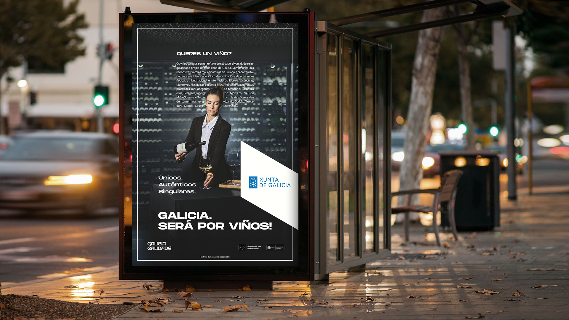 La estrategia no busca la hipérbole, sino la constatación: Galicia es mucho más que Albariño. La comunidad suma cinco denominaciones de origen y una amplia variedad de uvas y elaboraciones: Ribeiro, Valdeorras o Monterrei; mencía, brancellao, sousón o merenzao; blancos y tintos, jóvenes y con crianza, monovarietales y plurivarietales. Esa complejidad se transforma en idea creativa bajo un claim con retranca y tono cercano: ‘Será por viños!’, una expresión popular que apela a la abundancia y convierte la dificultad de elección en atributo.