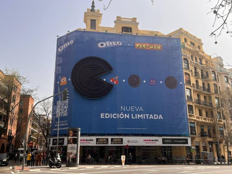 Oreo ha activado la campaña promocional de su edición especial con Pac-Man, cuya activación central es la lona en la calle Princesa 70 de Madrid. Gracias a la inteligencia artificial, la galleta de ocho metros que ocupa el cartel salta del mismo y transforma las calles de Madrid en un laberinto de Pac-Man.