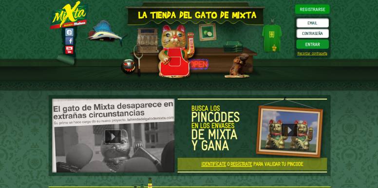 La promoción gira en torno a la plataforma “La Tienda del Gato de Mixta” (www.latiendadelgatodemixta.com), donde los participantes han de inscribir los pincodes que encontrarán en los productos de la marca para hacerse con su regalo o entrar en el sorteo de artículos únicos. la promoción busca la interactuación del usuario y una implicación mayor, puesto que estos deberán estar atentos a la oferta de la tienda virtual ya que el número de artículos que se ofertan es limitado. Para mantenerse al día la marca informará d elas novedades a través de sus canales en redes sociales (Facebook, Tuenti y YouTube). Asimismo se ha desarrollado una aplicación para iPhone y Android para facilitar el proeso de compra.