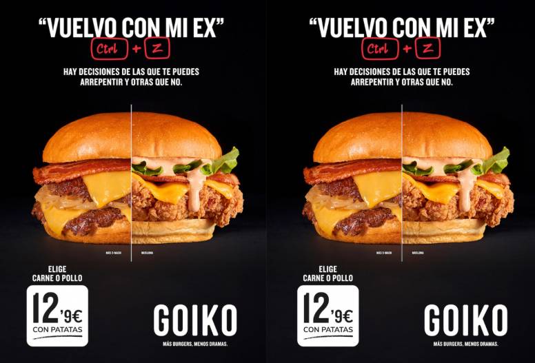 “Todos tomamos decisiones equivocadas de vez en cuando, y sería ideal tener un Ctrl+Z en el tiempo, pero cuando se trata de elegir entre carne o pollo en Goiko, esa preocupación desaparece. “Ctrl+Z” no es solo una campaña, es nuestra forma de decirle a nuestros clientes que no importa la hamburguesa que elijas, siempre habrás tomado la decisión correcta.", explica José Luis García, CMO en Goiko.